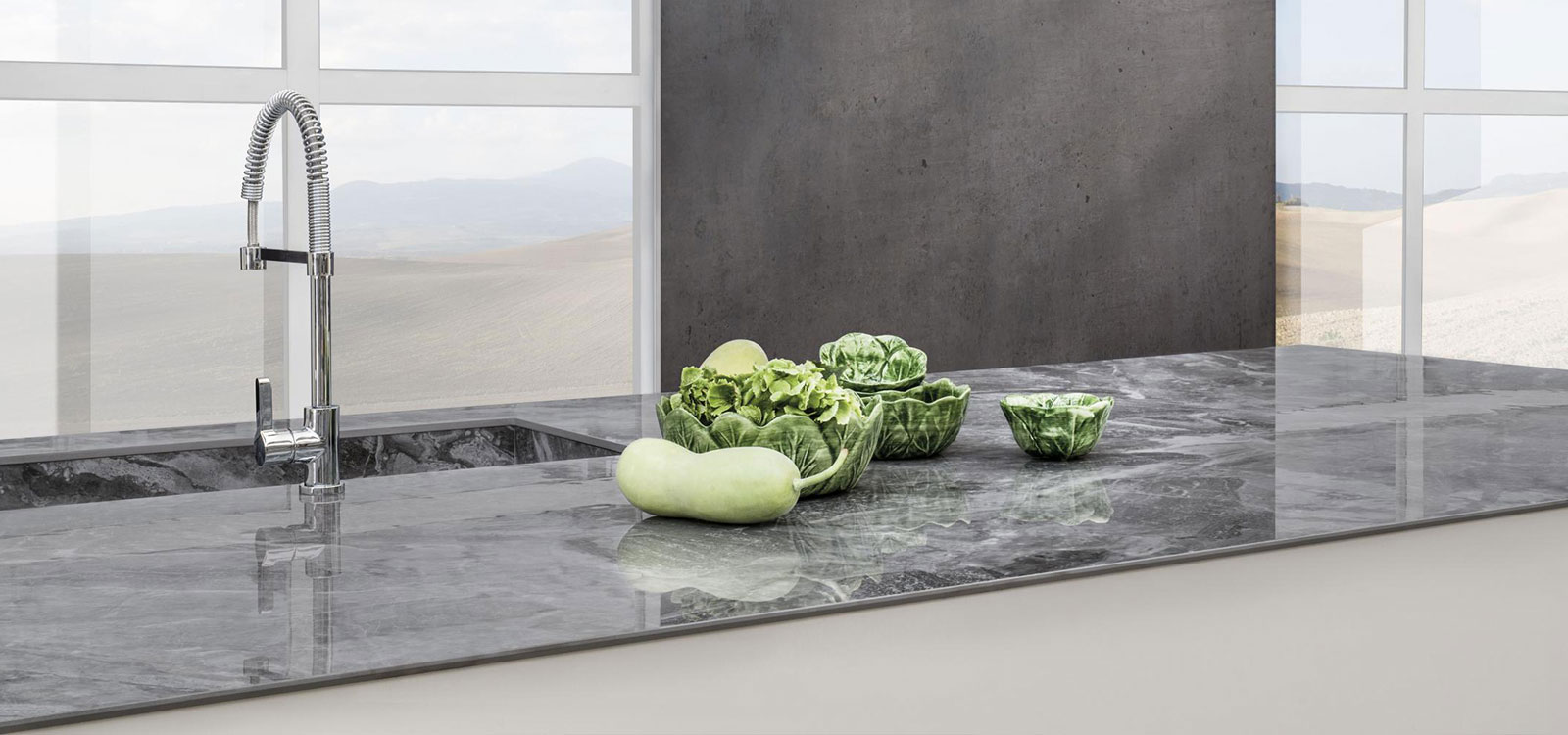 Laminam seta gris 絲網(wǎng)系灰廚房島臺(tái)